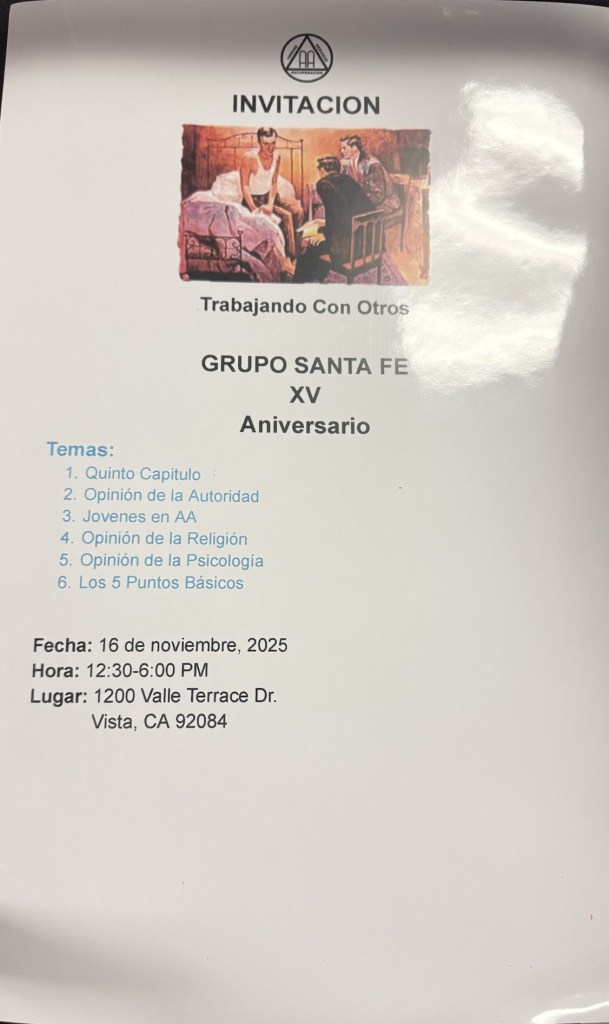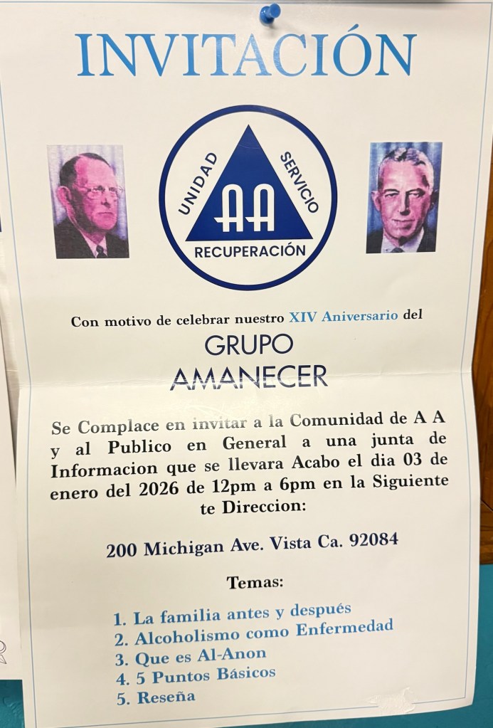 Directorio de grupos de AA en el condado Norte de San Diego lo puede encontrar AQUI